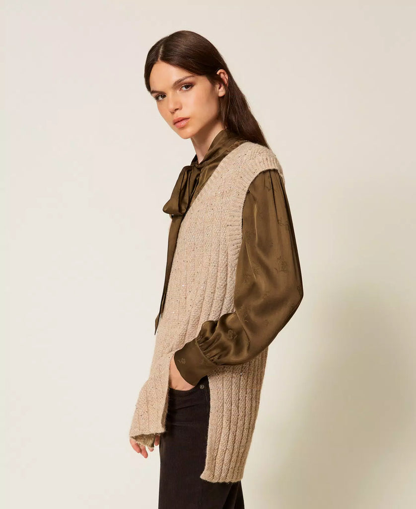 Gilet lungo collezione Actitude in maglia con paillettes e motivo a coste spostate.